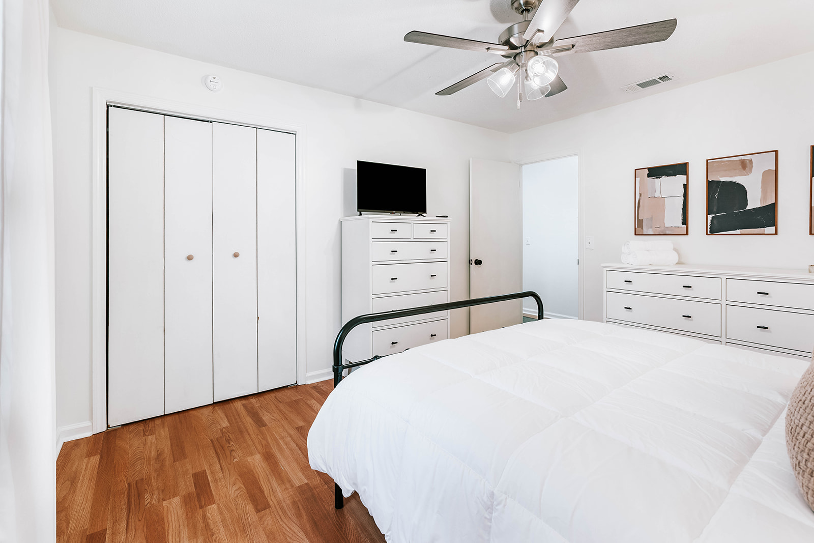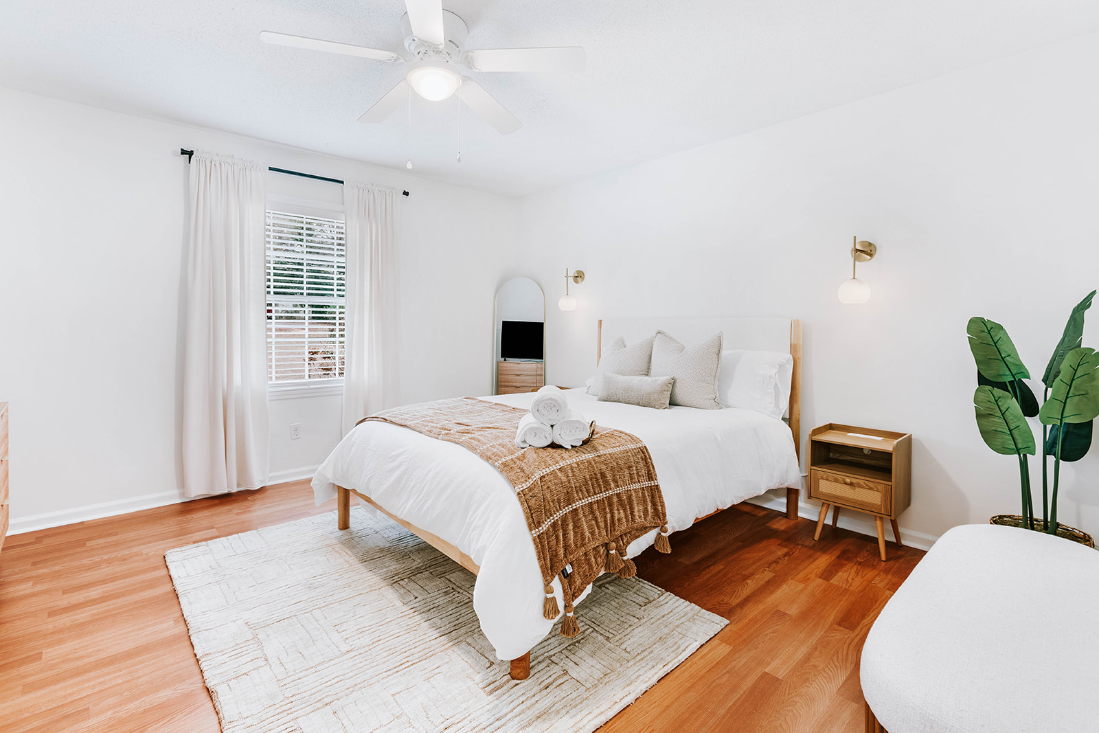 Each of the three bedrooms is designed with guest comfort in mind. Drift off beneath soft, inviting linens and wake up refreshed for another peaceful (or adventure-filled!) day in Statesboro. Here’s what you’ll find in each bedroom: