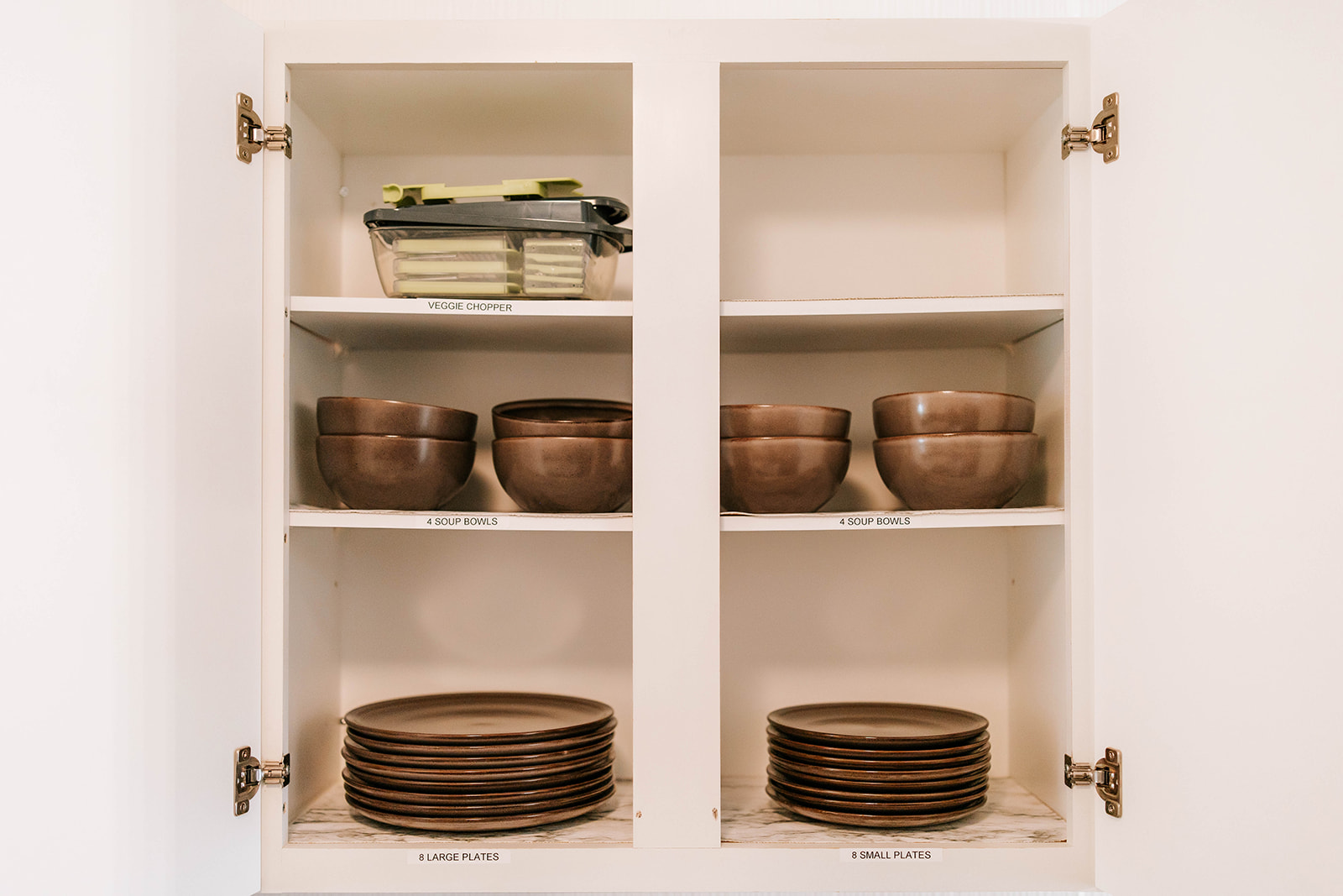 • Dishwasher pods, dish soap, sponges, paper towels - underneath the kitchen sink